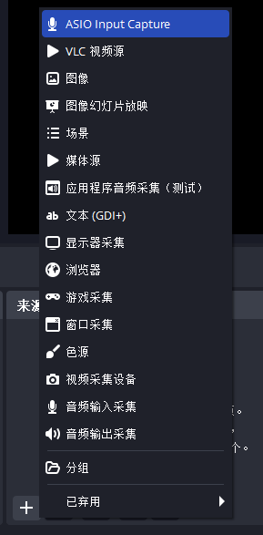 1. 从 OBS 的 来源 面板中选择 ASIO Input Capture
