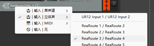 这之后,该轨道的音频将被立即发送到 ReaRoute 路由系统中对应的通道。